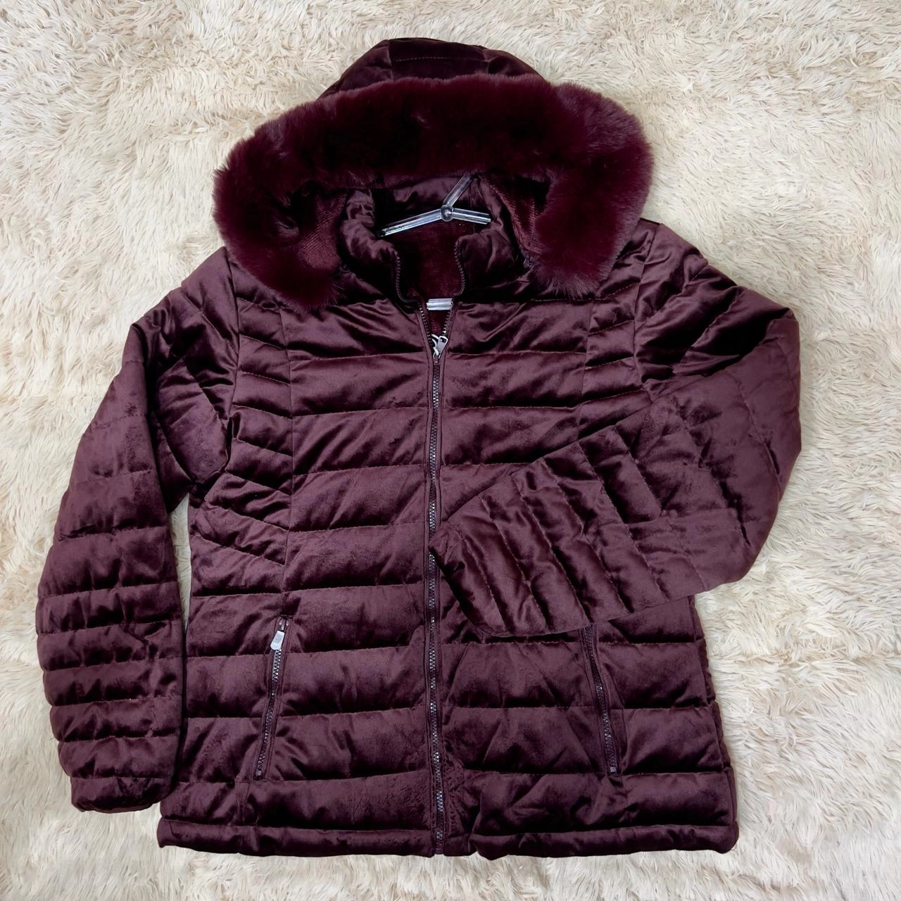 JAQUETA PELUCIADA EM TECIDO DE VELUDO, CAPUZ REMOVÍVEL.