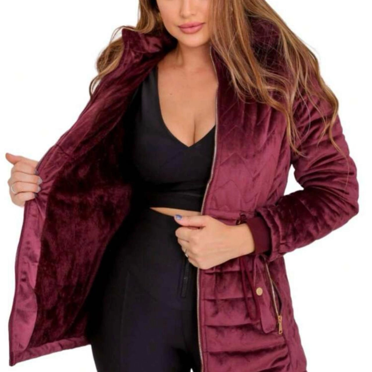 SOBRETUDO EM TECIDO DE VELUDO, PELUCIADO POR DENTRO, COM AJUSTE NA CINTURA E CAPUZ REMOVÍVEL