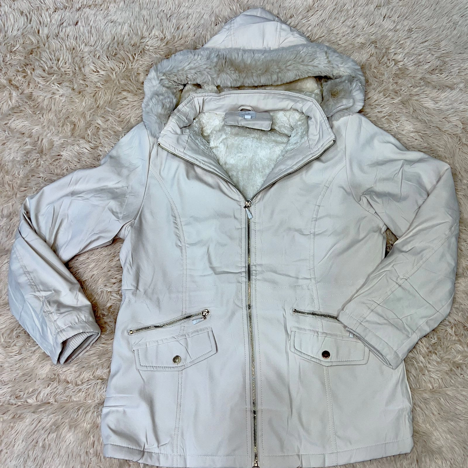 PARKA EM TECIDO DE SARJA PELUCIADO, COM AJUSTE NA CINTURA, CAPUZ REMOVÍVEL.