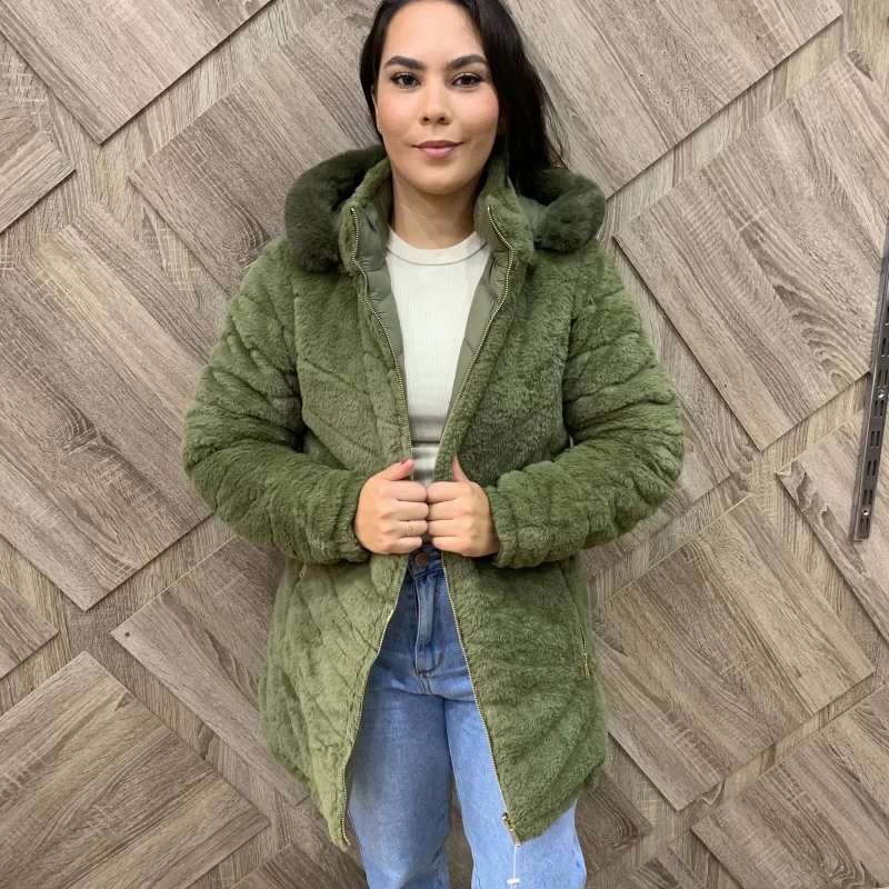 SOBRETUDO NYLON E TEDDY DUPLA FACE, CAPUZ REMOVÍVEL