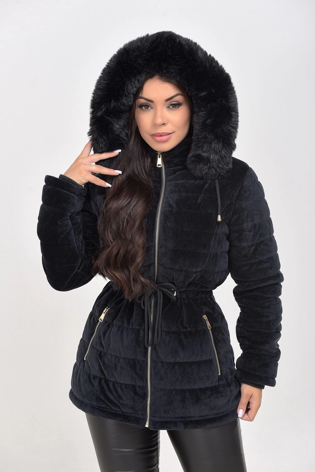SOBRETUDO EM VELUDO COM PELUCIADO POR DENTRO, AJUSTE NA CINTURA, CAPUZ REMOVIVEL