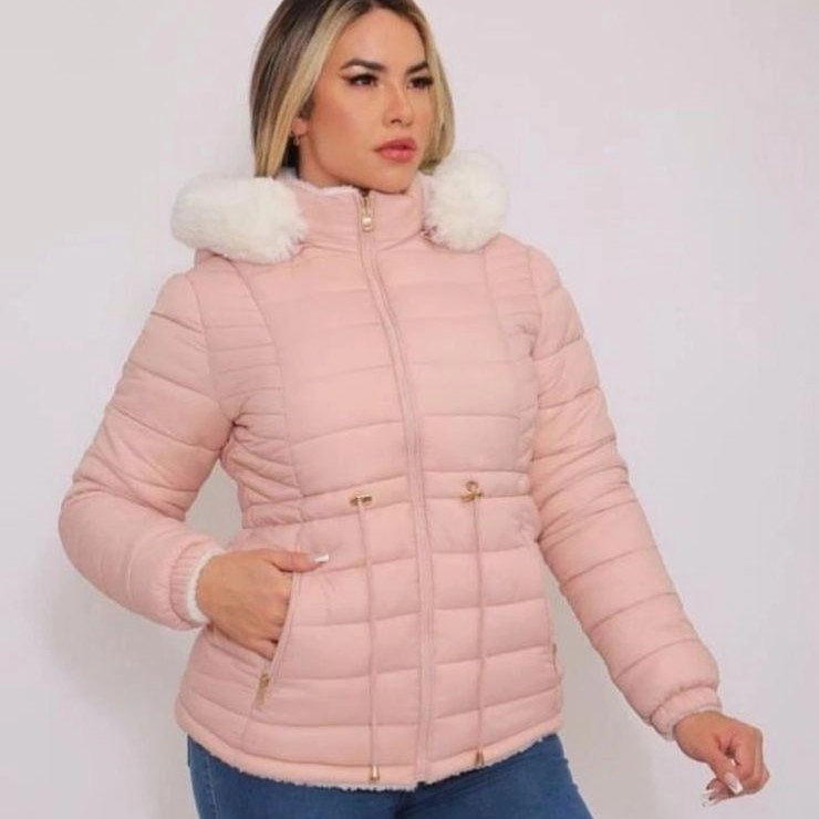 Jaqueta dupla face, teddy com nylon, ajuste dos dois lados, capuz removivel