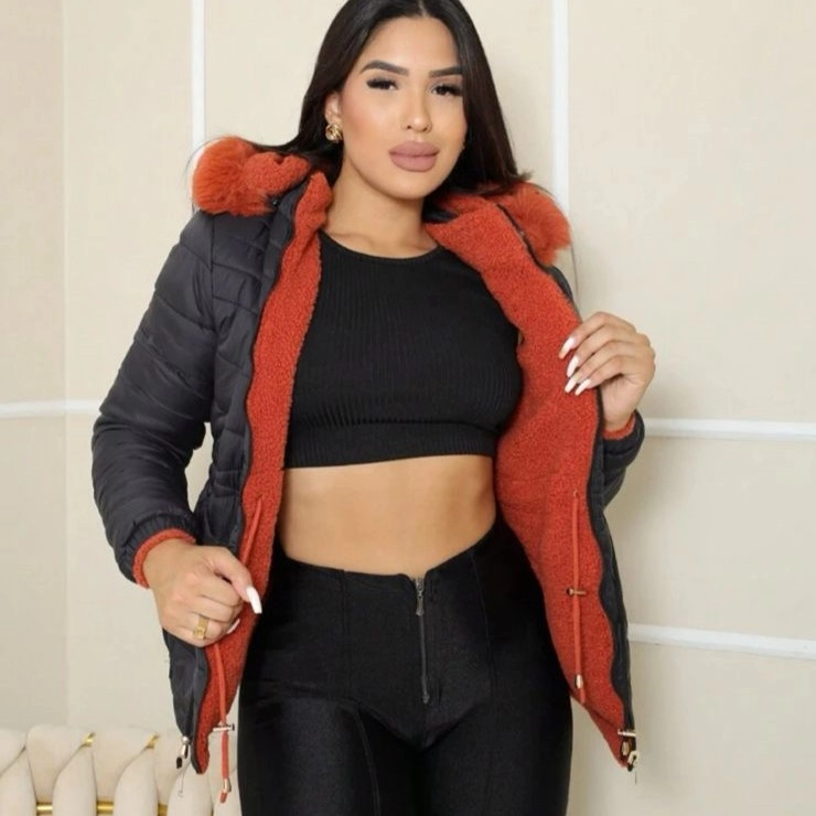 JAQUETA DUPLA FACE TEDDY COM NYLON, AJUSTE DOS DOIS LADOS, CAPUZ REMOVIVEL