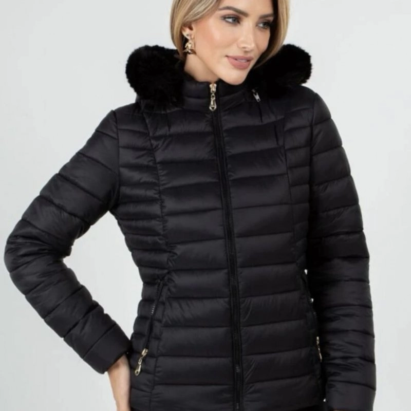 JAQUETA PELUCIADO EM TECIDO DE NYLON, CAPUZ REMOVÍVEL
